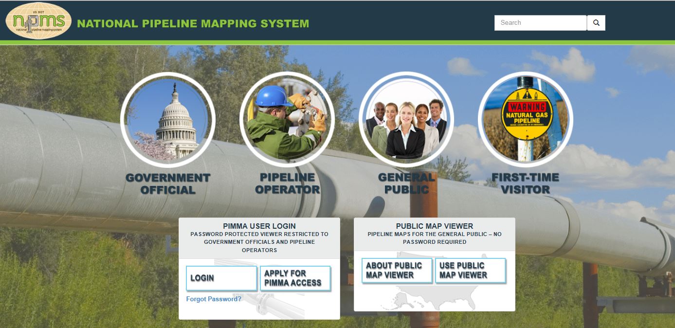 Visit the National Pipeline Mapping System’s “General Public” portal at www.npms.phmsa.dot.gov to find: